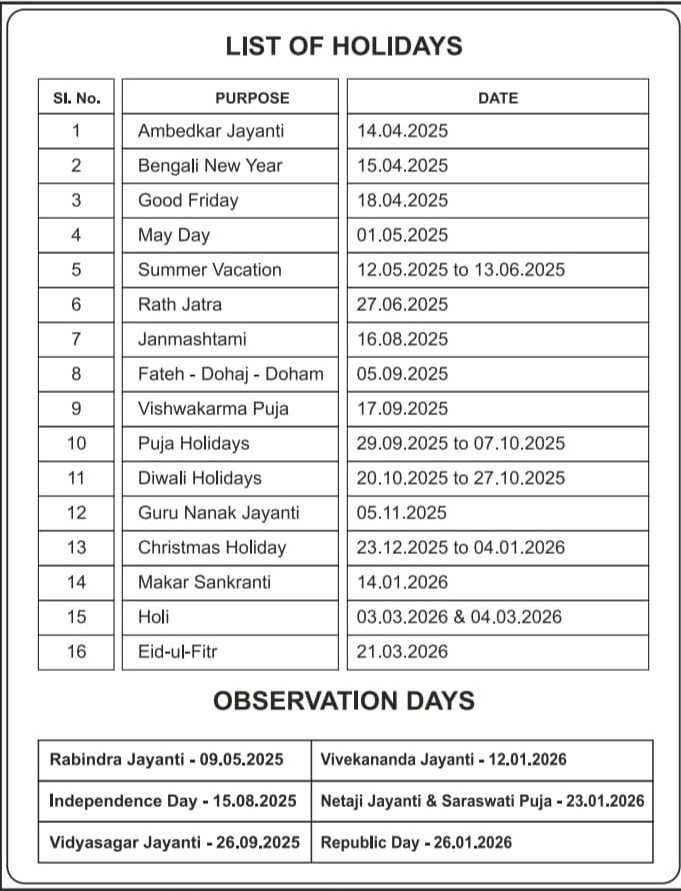 Address: The Principal, Vidyasagar Shishu Niketan, Rangamati, Midnapore-721102