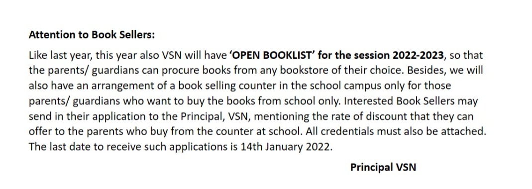 Book List For Class XI (Session 2022-23)