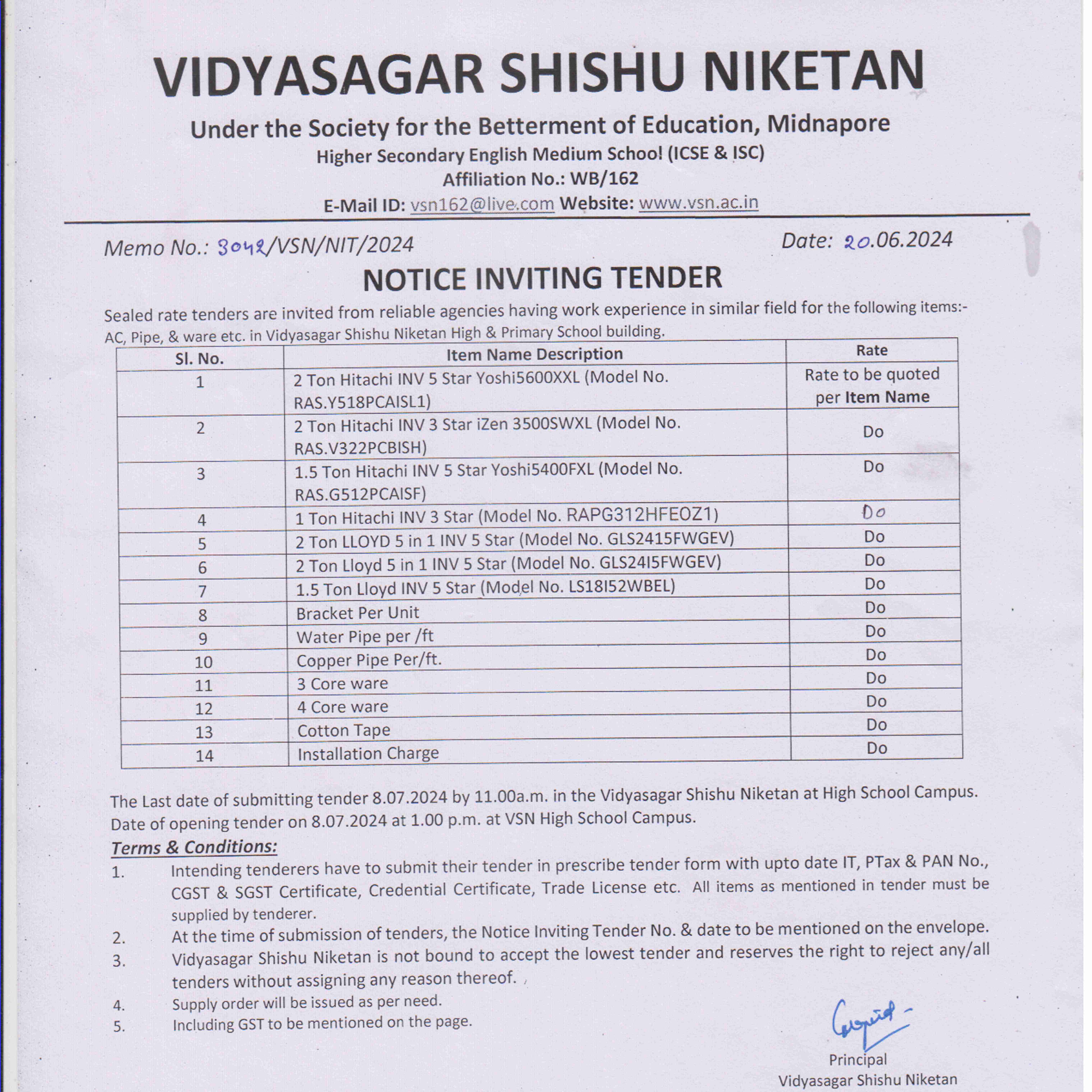 All official school announcements.Notice Inviting Quotation